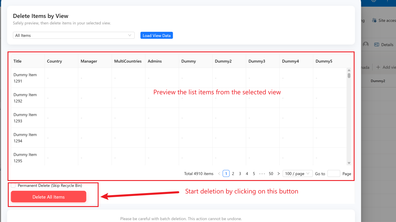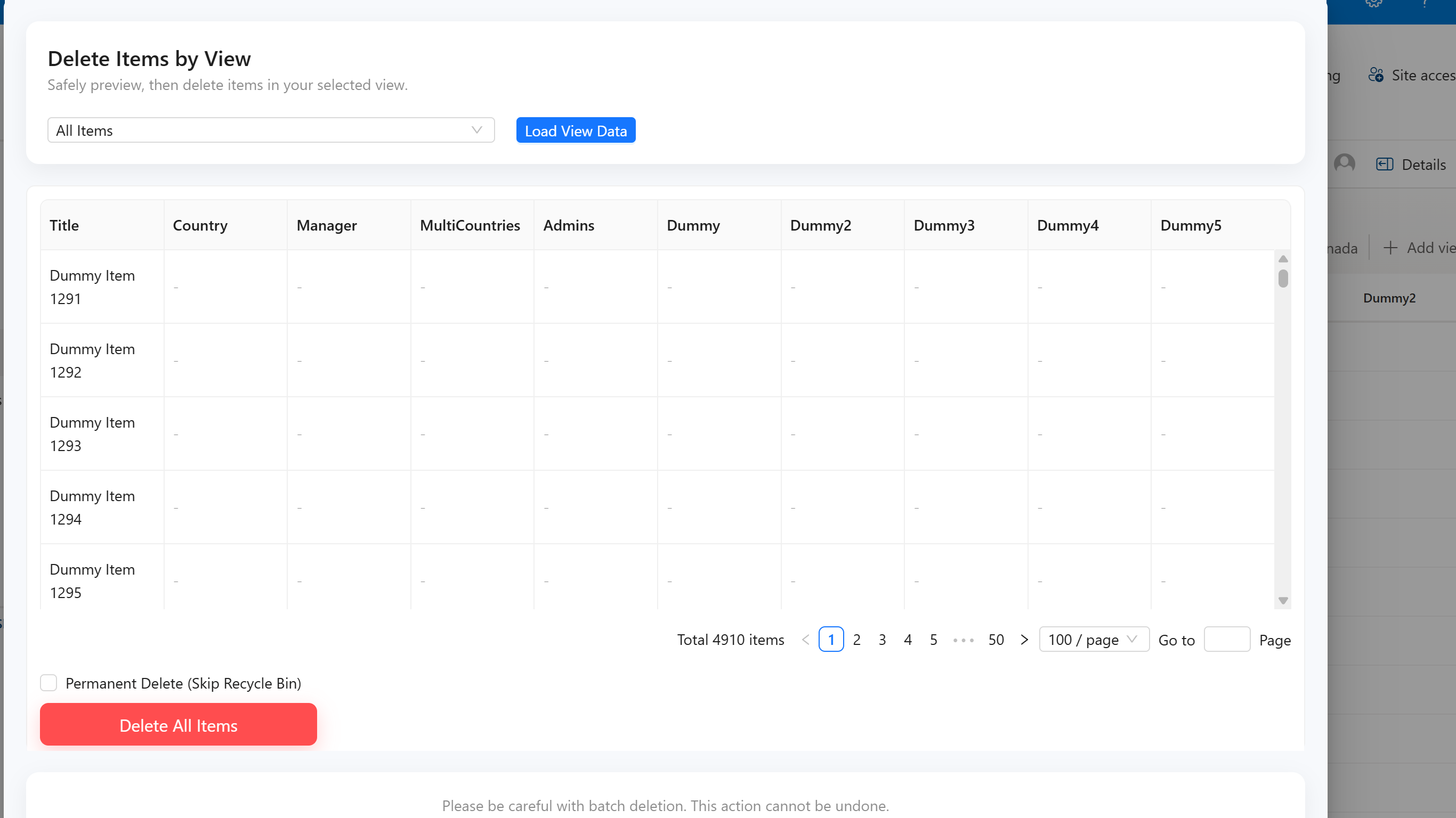 With the Batch Delete feature in List Tools for SharePoint, you no longer need to waste time on manual deletions. By leveraging existing list views, you can perform targeted, bulk data cleanup operations safely and efficiently. This not only improves your productivity but also helps maintain the health and relevance of your SharePoint data.
